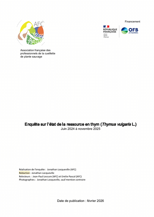Résultats de l’enquête thym publiés par l’Association française des professionnels de la cueillette de plantes sauvages (AFC)