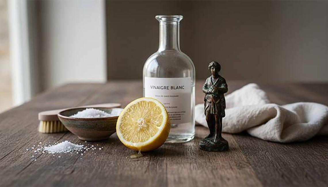 L'une des techniques les plus efficaces combine le vinaigre blanc et le sel fin. Créez une pâte en mélangeant ces deux ingrédients et frottez les zones atteintes avec un chiffon. L'acidité du vinaigre dissout l'oxydation tandis que le sel agit comme un abrasif doux. Rincez ensuite abondamment pour neutraliser l'action de l'acide. Le bicarbonate de soude, mélangé à un peu d'eau pour former une pâte, est également une excellente option. Appliquez la pâte sur le vert-de-gris, laissez agir quelques minutes, frottez avec une brosse douce puis rincez.