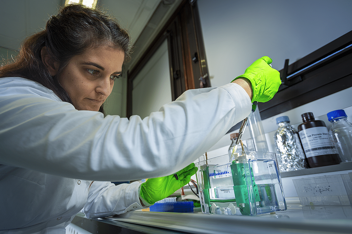 Les protéines végétales sont isolées des bactéries avant d’être purifiées. Puis elles sont séparées par taille et par charge électrique à l’aide d’une technique appelée électrophorèse