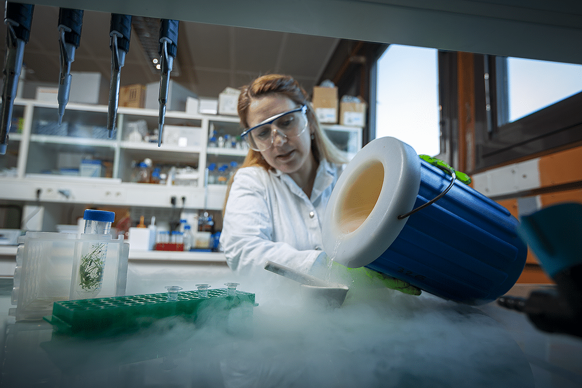 Les échantillons de tissus végétaux utilisés pour l’extraction de différentes molécules, comme l’ARN, sont ensuite congelés. Cette méthode permet de préserver les échantillons dans leur état initial, facilitant ainsi l’analyse précise des molécules et de leur rôle dans les processus biologiques des plantes.