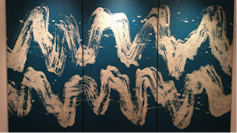 Je reste interdit. La reproduction sur l’écran ne rend sûrement pas justice au tableau réel en grand format. Mais je le sens immédiatement : cette artiste va me conduire à revisiter mes représentations du mouvement. Dans ses toiles, le trait représente des éléments essentiels, épurés, simples du mouvement, proches de ceux avec lesquels je joue dans la physique newtonienne quand j’enseigne ces fondamentaux.
