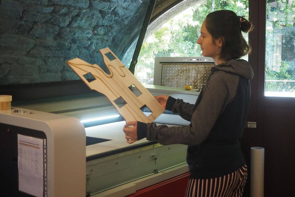 La carte de Grenoble a été tracée par Judith grâce au logiciel Inkscape et aux données géographiques de l’IGN. Elle a gravé les axes routiers emblématiques et les cours d’eau de la ville sur la plaque en un temps record grâce au graveur du FabLab.