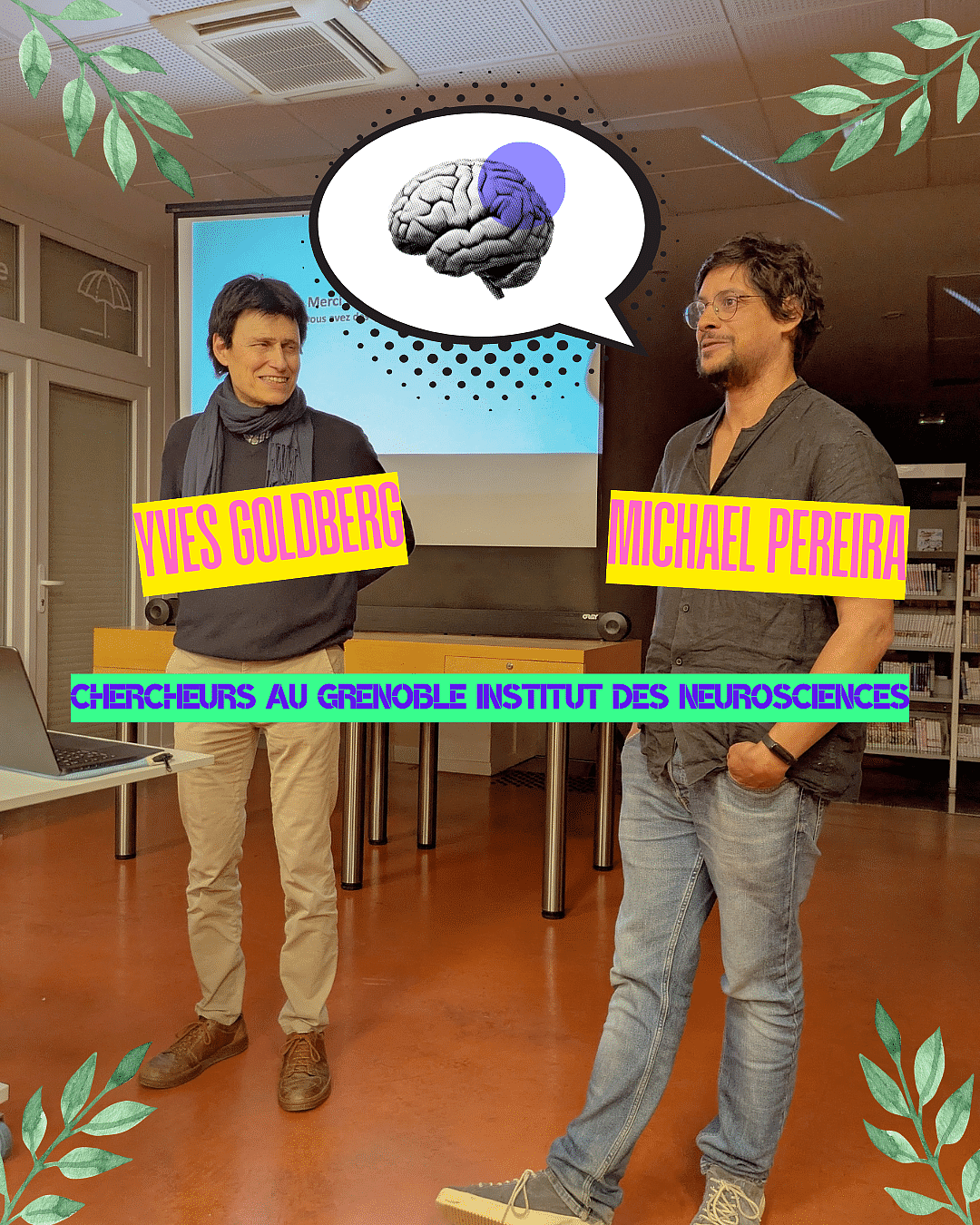 Pour ma part, j'ai eu le plaisir d'assister à la conférence "Petites neurones et grosses machines" à la Bibliothèque municipale Le verbe être à La Tronche. La conférence, sur le thème de l'intelligence et de la conscience, était animée par Michael Pereira et Yves Goldberg, deux chercheurs au Grenoble Institut des Neurosciences.