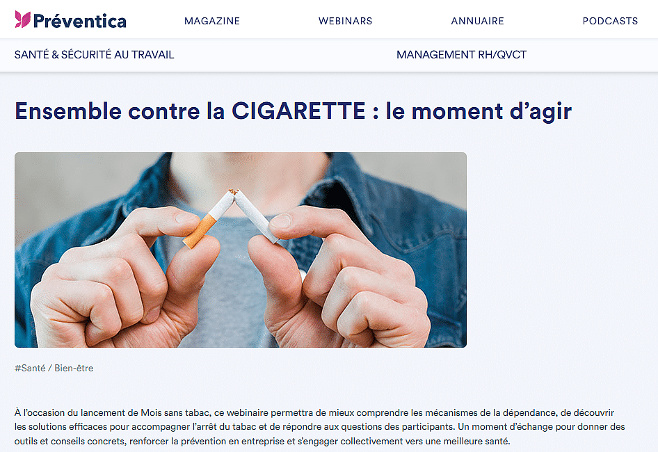 Mardi 4 novembre 2025 à 11h, je participerai à un webinaire dans le cadre de Préventica, avec le Fonds Addictions et Efficience Santé au Travail.