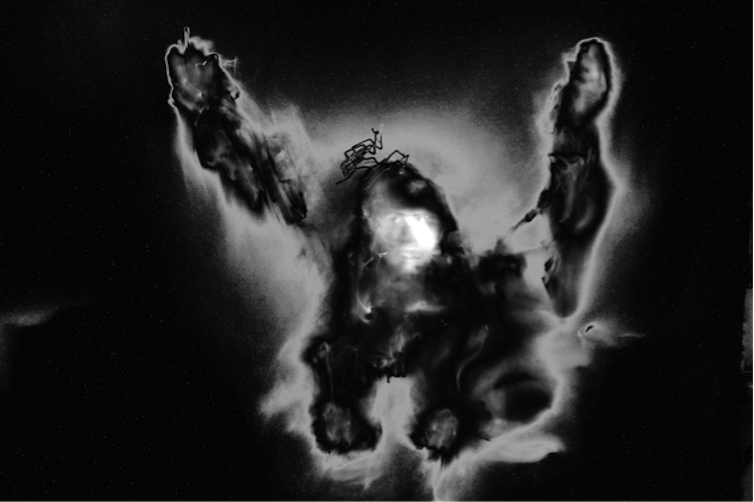 Actuellement, il suit cette voie à l’Institut Néel à Grenoble mais sans s’y réfugier. C’est évident quand je discute de physique avec lui. Mais, dans le même temps, pour notre plus grand bonheur, en artiste et en physicien, il fabrique un autre monde dans son atelier d’artiste. Et en créant ses Noctographies, il manipule notre vision. Il l’étire dans le temps par petites touches lumineuses successives, ici et là, grâce à la technologie, et il vient questionner l’évidence de notre regard quand nous pensons tous comme Thomas.