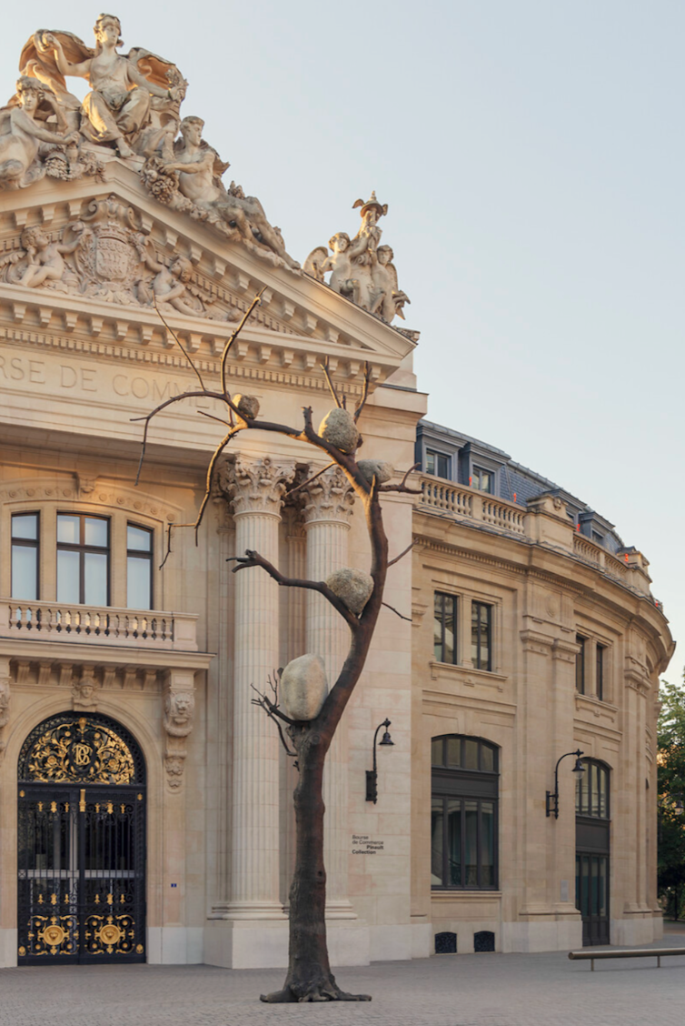 J’ai découvert l’Arte Povera bien après avoir fait connaissance avec le travail de Giuseppe Penone. Depuis longtemps déjà, il me coupe le souffle (qu’il a d’ailleurs sculpté). Ici, son arbre métallique chargé de lourdes pierres, devant la Bourse de Commerce ouvre le bal.