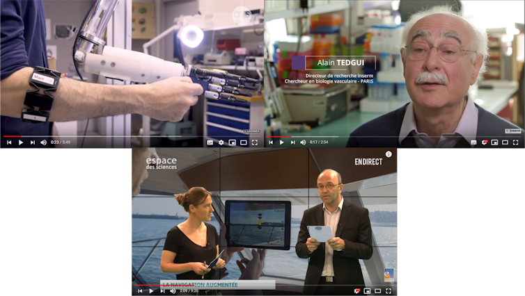 Ce décalage entre le discours institutionnel et le ton des vidéos sur YouTube transparaît dans la façon dont les institutions utilisent le média. Le plus souvent, les chaînes institutionnelles servent de « lieu de stockage » où sont regroupées des vidéos diffusées sur d’autres réseaux sociaux. Ces usages donnent à voir une image de géants sans visage aux institutions de CSTI : pour la plupart, les vidéos institutionnelles manquent de personnalité, l’interlocuteur change à chaque vidéo, le débit de parole semble faible, il y a peu de dialogue avec le public, etc. Des similarités avec les formats télévisuels que l’on peut retrouver par exemple dans les reportages du CNRS, les interviews de l’INSERM ou encore le “journal télévisé” du CCSTI Espace des Sciences.
