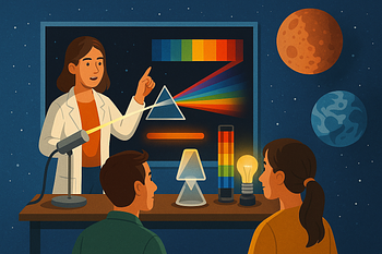 À l’aide de lampes spectrales, néons, halogènes et filtres colorés, vous apprendrez comment les scientifiques analysent la composition des astres… sans jamais les toucher !