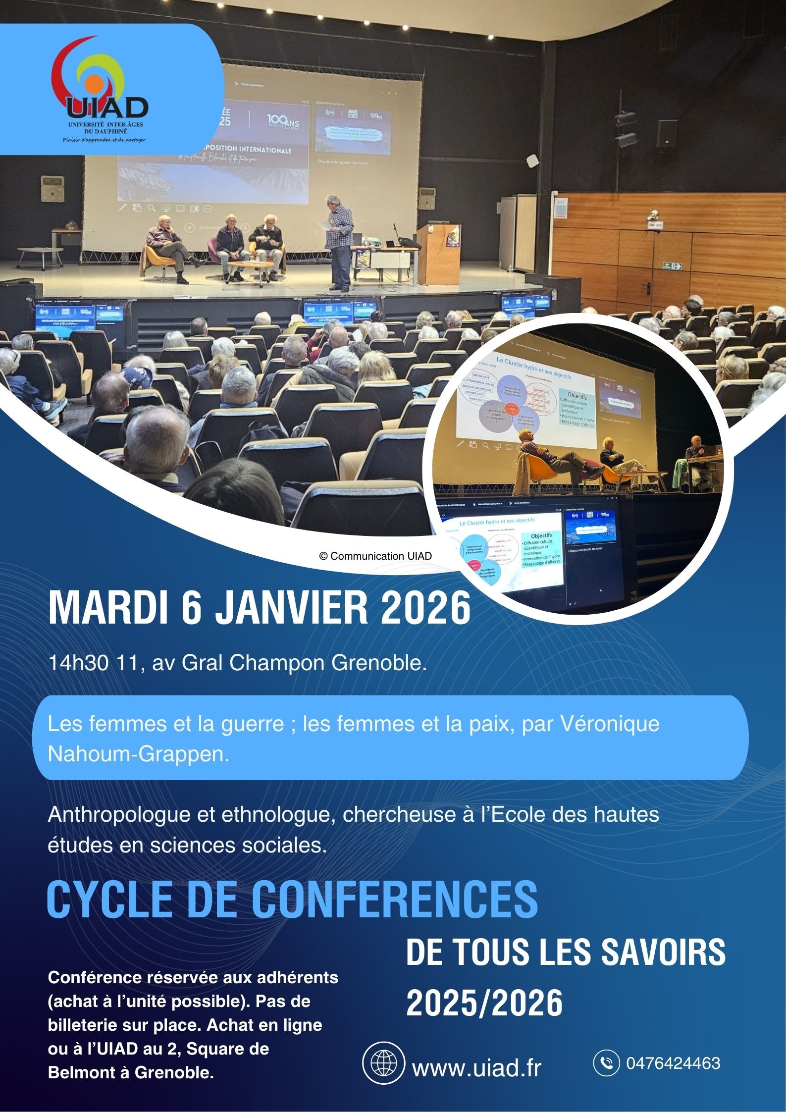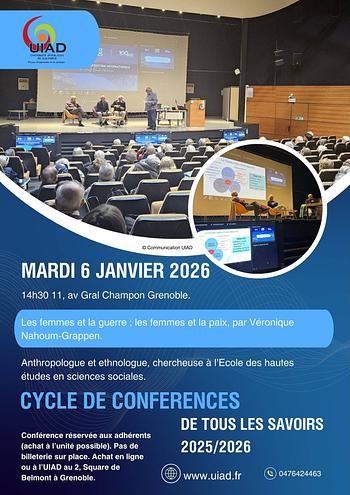 Réservée aux adhérents inscrits aux conférences (toutes ou à l'unité). Pas de billetterie sur place mais sur www.uiad.fr ou à l'accueil de l'UIAD au 2, Square de Belmont à Grenoble.