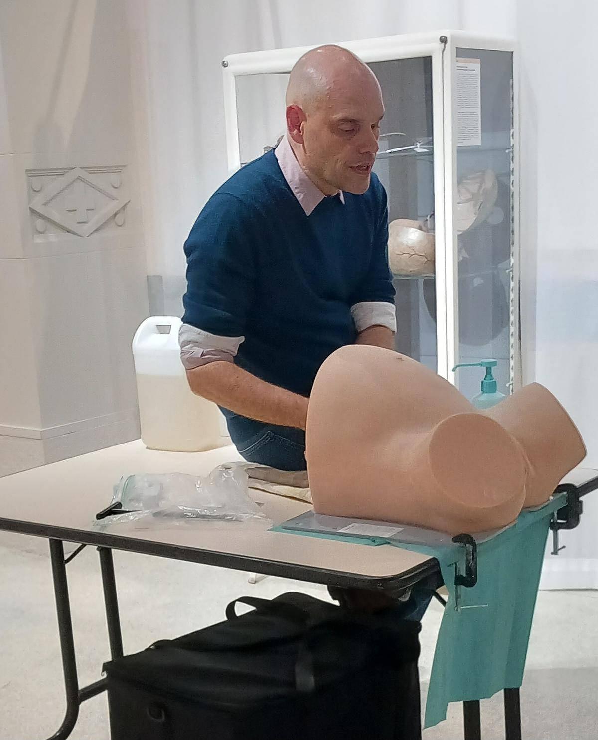 Venez assister à une démonstration d’accouchement sur mannequin pédagogique par Fabien Vellement, sage-femme.
