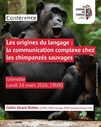 Lors de cette conférence, Cédric Girard-Buttoz présentera les découvertes récentes sur la complexité et l’évolution des combinaisons de cris chez les chimpanzés sauvages, nous permettant ainsi de mieux comprendre les origines de notre propre langage.